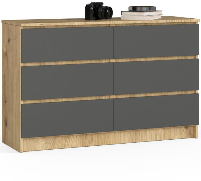 | ai_generic.short.description | <div class="short_description">Modern, 6 fiókos komód Artisan tölgy korpusszal és matt szürke frontokkal. Kiváló minőségű laminált bútorlapból készült, ABS élzárással a tartósság érdekében.</div> |