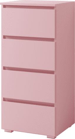 Komód COSMO C07 | rózsaszín COSMO C07 komód az   modern és elegáns komód egy lány szobájába. Az érdekes rózsaszín dizájn támogatja a bútorok vonzó megjelenését . A fogantyú nélküli rendszer nagyon praktikus és biztonságos, ugyanakkor bájos kialakítású. A komód 4 fiókkal rendelkezik, különösen alkalmas apró tárgyak tárolására, amelyeket mindig kéznél szeretne tartani. A komód magas és keskeny, kisebb helyiségekbe is alkalmas. laminált (16 mm) ABS élek (0,5 mm) A COSMO komód nagyszerű választás elsősorban annak köszönhetően   kiváló minőségű   designnal kombinálva   nagyszerű ár . A bútorok nagyobbra valók   biztonsági ABS élek 0,5 mm vastagsággal. A nyílás fogantyú nélküli. A karbantartás egyszerű – csak nedves ruhát vagy bútortisztítót használjon. szélessége: 45 cm magasság: 97 cm mélysége: 41 cm aljzatok száma: 4 súlya: 27 kg szállítás:   leszerelve színváltozat: mályvacukor