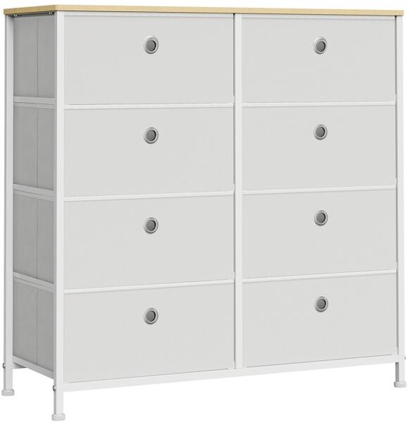 Az AUK-E1024 WT komód praktikus tárolási megoldást kínál modern kivitelben. Teteje MDF-ből készült, matt tölgyfa dekorral, ami természetes megjelenést és könnyű karbantartást biztosít a bútornak. A szilárd fémváz és lábak biztosítják a stabilitást és a hosszú élettartamot, míg a nyolc nem szőtt szövetből készült fiók könnyű és rugalmas tárolási lehetőséget biztosít különböző apróságok számára. A komód méretei 80 × 30 × 82 cm, ami alkalmassá teszi kisebb és nagyobb terekben való használatra, ahol a dolgokat áttekinthetően és hatékonyan kell elrendezni.