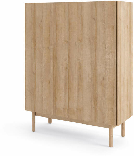 BOHO KD97 magas kétajtós komód,   amely egyszerűen tökéletes választás minden nappaliba, hálószobába vagy előszobába. A kellemes riviera tölgy szín a fehér márvánnyal kombinálva igazán bámulatos hatást kelt. A számos tároló helynek köszönhetően biztos minden szobában megállja a helyét. Az ajtók mögött két polc található.