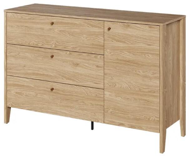 KORINA CZ-04 komód Ez az elegáns KORINA kollekcióbeli fiókos szekrény ötvözi a praktikumot a modern dizájnnal . Olyan bútort keres, amely segít rendben tartani a szobáját, és egy csipetnyi bájt kölcsönöz hálószobájának? A KORINA CZ-04 fiókos szekrény az ideális megoldás. Kompakt méreteinek köszönhetően tökéletesen illeszkedik kisebb helyiségekbe, ugyanakkor három tágas fiókkal és egy szekrényel rendelkezik, így rengeteg helyet biztosít minden apróságnak. A teteje ideális éjjeli lámpa, fényképek vagy kedvenc dekorációk elhelyezésére - minden, amire szüksége van, mindig kéznél lesz. A fiókos szekrény elegáns olajozott tölgyfa felülettel rendelkezik, amely meleg és természetes megjelenést kölcsönöz a bútornak. laminált fém A test 16 mm és 22 mm vastagságú laminált forgácslapból készült, ami szilárdságot és hosszú élettartamot garantál. A test éleinek felületkezelése 0,45 mm és 1,00 mm vastag ABS élekkel készült a tökéletes sérülésvédelem érdekében. A felső lap laminált forgácslapból (16