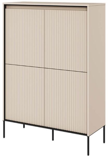 SWING TR-03 fiókos komód LED világítással | bézs Az elegáns SWING TR-03 fiókos szekrény modern bézs-homok színben , kiváló minőségű anyagokból készült. A fiókos szekrény NYOMÁSRA NYITÓ rendszerrel rendelkezik , amely lehetővé teszi a könnyű és kényelmes nyitást és zárást fogantyúk nélkül. A léces ajtódizájn egy újabb esztétikai elem, amely jellegzetes bájt és stílust kölcsönöz a helyiségnek. Az elegáns fekete fém lábak könnyedséget kölcsönöznek az összképnek, növelik a stabilitást és a tartósságot. A komód ára tartalmazza a LED világítást. A komód szétszerelt állapotban kerül kiszállításra. test - 16 mm-es laminált forgácslap ajtó - MDF 18 mm 3 mm-es HDF fém lábak A bútor kiváló minőségű és tömör, 16 mm vastag laminált lapból , az ajtók 18 mm vastag MDF lapból készültek. A bútor hátlapja tartós, 3 mm vastag HDF- ből készült. Tisztítása egyszerű, csak törölje át nedves ruhával vagy bútortisztítóval. A biztonság és a bútor megfelelő stabilitásának megőrzése érdekében azt véglegesen a