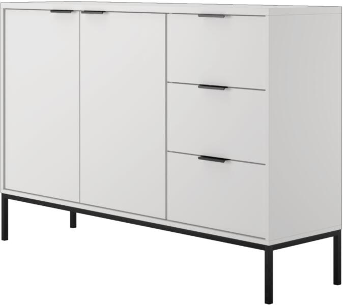 AUSTIN komód | fehér Tegyen egy csipetnyi eleganciát otthonába az AUSTIN fiókos komóddal, modern fekete-fehér dizájnjával . Ez a stílusos darab a letisztult minimalista dizájnt ötvözi a magas funkcionalitással, így ideális kiegészítője lehet bármely otthonnak. A fiókos komód három tágas fiókkal és két zárható, állítható polcokkal ellátott szekrénykével rendelkezik, amelyek rengeteg helyet biztosítanak ruhák, kiegészítők vagy egyéb szükséges dolgok számára. A fiókok klasszikus sínekkel vannak felszerelve, lágyan záródó rendszer nélkül. laminált fém A masszív, 18 mm-es laminált forgácslap konstrukció hosszú élettartamot biztosít, míg a porszórt acélkeret és a fekete alumínium fogantyúk modern, kifinomult megjelenést kölcsönöznek . A port puha, száraz vagy enyhén nedves mikroszálas kendővel töröld át. Kerüld az erős szivacsok vagy kefék használatát, amelyek megkarcolhatják a felületet. szélesség: 150 cm magasság: 100,4 cm mélység: 40 cm lábmagasság: 18 cm aljzatok száma: 3 ajtók száma: 2