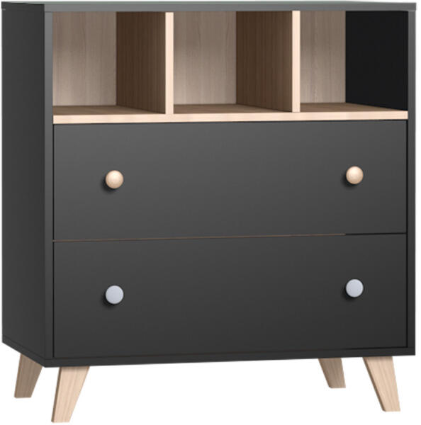 A babaszoba elengedhetetlen eleme. Úgy lett kialakítva, hogy viszonylag kis helyen is elférjen, mégis a lehető legnagyobb segítséget nyújtsa a friss szülőknek. Magassága, pakolófelületei, variálhatósága mind a szülők igényei alapján lettek kialakítva. Nem csak tárolóként funkcionál, hanem egy pelenkázó toldalék vásárlásával pelenkázó komódként használható a komód teteje. A bútorok lábai bükkfából készülnek. Méretek: 86x48x92cm Szállítás: A terméket lapra szerelten szállítjuk. Otthoni összeszerelés: A csomagolásban található szerelési útmutató szerint. Garancia: 2 év gyártói és akár 3 év kiterjesztett garanciával! Felhasznált anyagok: Antracit szürke, Sonoma tölgy bútorlap. A termék minden hatályos MSZ EN szabványnak megfelel és TÜV tanúsítvánnyal rendelkezik! Csomagolása: - dobozszám: 2 karton - súly: 50kg Szállítási idő: megrendeléstől számított 4-8 hét!