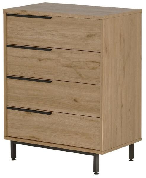 Az elegáns, diófa dekorú komód időtlen eleganciát és meleg hangulatot kölcsönöz hálószobájának és nappalijának. Modern kialakításának köszönhetően könnyen kombinálható más bútorokkal, és univerzális darabként kiemeli belső térének stílusát. Kiváló minőségű, 18 mm vastag melaminbevonatú forgácslapból készül, amely biztosítja a szekrény szilárdságát és hosszú élettartamát. A fém lábak stabilitást és modern megjelenést kölcsönöznek a szekrénynek, és biztosítják, hogy a szerkezet robusztus és ellenálló legyen a mindennapi használat során. 74,8 × 95,1 × 44,5 cm méreteinek köszönhetően a komód elegendő tárolóhelyet kínál ruhák, kiegészítők vagy egyéb háztartási cikkek számára. A praktikus elrendezésnek köszönhetően minden mindig kéznél lesz, és hálószobája rendezett és szervezett benyomást kelt.