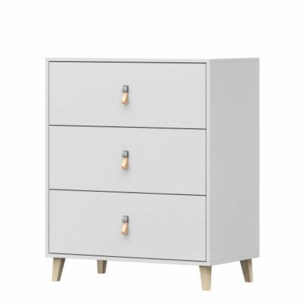 Szobák > Gyerekszoba, babaszoba és ifjúsági bútor > Gyerekszoba komódok és kisszekrények - Figo Komód 3S 02  Figo komód ötvözi a modern skandináv stílust  a funkcionalitással és a mindennapi használat kényelmével.  Három tágas fiókkal van felszerelve , amelyeknek köszönhetően rendszerezheti dolgokat a gyermekszobában.     A bútoro nem feltűnő, de nagyon fontos eleme a bőr fogantyúk, amelyek melegséget adnak, így a bútor karakterét és természetes megjelenését adják.