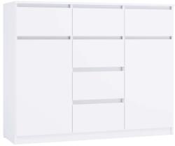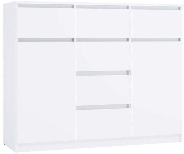 Univerzális dizájn: Az egyszerű, elegáns forma matt fehér színben biztosítja, hogy a komód illeszkedjen mind a modern, mind a klasszikus belső terekhez. Fogantyú nélküli előlapok hangsúlyozzák a minimalista jelleget, miközben kényelmes használatot biztosítanak.