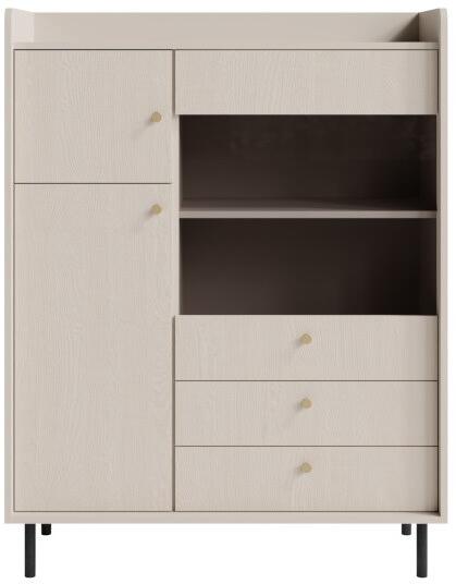 GRANDE GR2 komód Tegye otthonossá nappaliját a GRANDE kollekció bútoraival , amelyek harmónia és kényelem hangulatát viszik a térbe. A megemelt és finoman lekerekített élek nemcsak megakadályozzák, hogy a tárgyak leessenek a felső felületről, hanem eredeti és elegáns megjelenést is kölcsönöznek a bútoroknak . A GRANDE GR2 komód ennek a kollekciónak a része, amely a stílusos dizájnt számos praktikus megoldással ötvözi. A komód tágas, fiókokkal és szekrényekkel, arany fogantyúkkal kiegészítve. 16 mm-es laminált ABS élek fém A tartós laminált bútorlapból készült, kiváló minőségű kidolgozás a modern, időtlen dizájnnal kombinálva hosszú élettartamot és mindennapi kényelmet garantál. A szerkezet 16 mm vastag tömör laminált bútorlapból készült. Az élek védő ABS csíkokkal vannak ellátva . A bútort szétszerelt állapotban szállítjuk, és egyértelmű összeszerelési útmutatót tartalmaz. Javasoljuk, hogy a bútort puha, enyhén nedves ruhával tisztítsa. Szükség esetén használhat laminált felületekhez