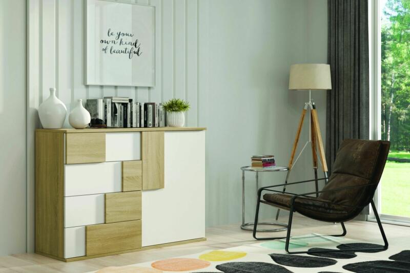 Elstra egyajtós, négy fiókos komód Az ELSTRA egy ajtós, négy fiókos szekrény mindenki elvárásainak megfelel. A szekrény belsejében tágas polc és négy fiók található, amelyek sok helyet biztosítanak a mindennapi dolgoknak, és segítik a rend fenntartását. A komód nagyszerű választás nappaliba, étkezőbe vagy a hálószobába. A különféle színeknek köszönhetően a szekrény kombinálható sok más bútorral. Méretek: szélesség: 120,5 cm magasság: 85 cm mélység: 45 cm Választható színek: