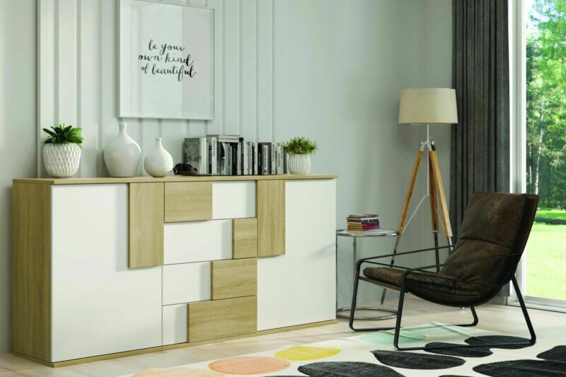 Elstra két ajtós, négy fiókos komód Az ELSTRA két ajtós, négy fiókos szekrény mindenki elvárásainak megfelel. A szekrény belsejében tágas polc és négy fiók található, amelyek sok helyet biztosítanak a mindennapi dolgoknak, és segítik a rend fenntartását. A komód nagyszerű választás nappaliba, étkezőbe vagy a hálószobába. A különféle színeknek köszönhetően a szekrény kombinálható sok más bútorral. Méretek: szélesség: 180,5 cm magasság: 85 cm mélység: 45 cm Választható színek: