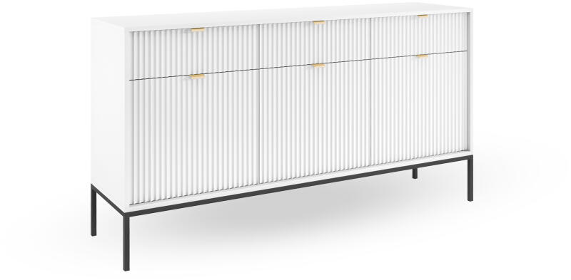 Az elegáns fehér színben készült NOVA KSZ154 komód segít praktikusan és elegánsan berendezni a szobát. Tágas tároló helyet kínál, így végül mindennek megtalálja majd a helyét. A három ajtós szekrény fölött három fiók található. Az ajtók mögött pedig egy-egy polcot helyeztek el.