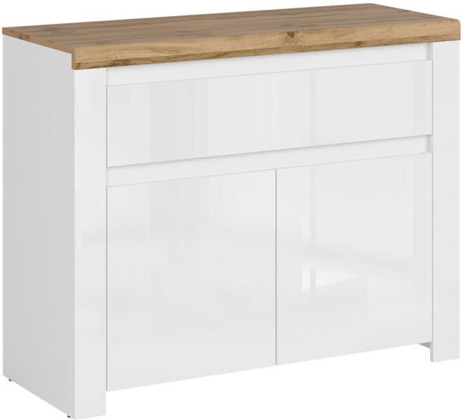 TEMPO KONDELA Komód 2D1S, Fényes Fehér/Wotan Tölgy, Vilgo - fizz