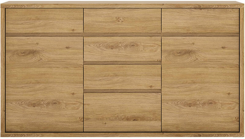 Anyag: laminált DTD Színkivitel: shetland tölgy/szürke Méretek (SzxMéxMa): 156x40x86,8 cm Korpusz vastagsága: 2,8 cm Fogantyúk nélkül Egyszerű a elegáns Vastag korpusz 6 fiók 2 polc 2 jednodverové szekrények modern stílus Kiváló minőség Precíz kidolgozás Ellenáll a karcolásoknak, az UV sugárzásnak, a magas hőmérsékletnek Polc teherbírása: 5 kg Fiók teherbírása: 5 kg Bontásban szállítva