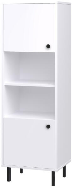 A VENUS sorozat magas vitrinje fehér színben ideális megoldás a modern és univerzális belső terek kedvelőinek. Időtálló dizájnja a kontrasztos fekete részletekkel elegáns és egyben minimalista jelleget kölcsönöz a belső térnek. Átgondolt kialakításának köszönhetően a vitrin dekoratív és praktikus funkciókat is betölt. A VENUS vitrin fehér korpusa könnyedséget és frissességet hoz a belső térbe, így ideális választás világos, tágas nappalikba, de sötétebb berendezések kontrasztos elemeként is jól szolgál. A fekete akcentus a fém lábak és fogantyúk formájában kiemeli a bútor modern karakterét, hangsúlyt adva neki. A vitrin tágas belseje lehetővé teszi a legfontosabb dolgok – könyvek, dekorációk vagy elegáns asztali edények – elrendezését, miközben osztályt és harmóniát ad a belső térnek. Univerzális fehér szín – A semleges fehér különböző stílusokhoz illik, a moderntől a klasszikusig. Fekete részletek – A kontrasztos fém lábak és fogantyúk fekete színben hangsúlyt és karaktert adnak a bútornak. Nagy kapacitás – Az átgondolt belső elrendezés elegendő helyet biztosít a kedvenc tárgyak tárolására és kiállítására. Tartós szerkezet – Az elülső és korpusz részek 18 mm vastag laminált lapból készültek, karc- és sérülésállóak. Esztétikus kivitel – Minden él gondosan ABS éllel van borítva, ami növeli a bútor tartósságát és esztétikáját. Stabil és stílusos lábak – A 13 cm magas fém lábak stabilitást biztosítanak és megkönnyítik a bútor alatti takarítást. Könnyű karbantartás – A laminált felület szennyeződésálló és könnyen tisztítható. Modern dizájn – A fehér és fekete kombinációja ideálissá teszi a vitrint a minimalista és ipari trendekhez. Specifikációk:Szín: FehérKivitel: Laminált bútorlap 18 mm|PVC élFelületkezelés: MattAjtók száma: 2Polcok száma: 2Csomag méretei: 151x51x8 cm - súly 27 kg|84x58x7 cm - súly 12 kgTermék méretei: Magasság: 153 cm|Szélesség: 50 cm|Mélység: 40 cmModell: Polc