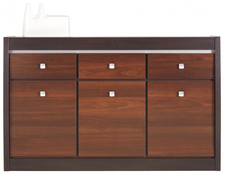 Szobák > Nappali szoba bútor > Komód - FORREST FR 05 komód sötét dióA FORREST  termékcsalád stílusos komódja, mely a sötét dió markáns színének, és a bútor praktikus kialakításának köszönhetően, bármelyik nappaliban megállja a helyét.  Tekintse meg a FORREST  termékcsalád többi tagját is!   Méret (SzxMaxMé): 144,4 x 89,8 x 41,5 cm Szín:  S ötét dió Front: MDF bútorlap Elzárás: ABS