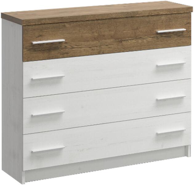 MARKOS komód (Anderson tölgy - fehér)  A MARKOS  termékcsalád stílusos fiókos komódja, mely az anderson tölgy és a fehér színek kombinációjának, és a bútor praktikus kialakításának köszönhetően, bármelyik nappaliban megállja a helyét.  Tekintse meg a MARKOS termékcsalád többi tagját is!   Méret (SzxMaxMé): 103 x 92 x 40 cm Szín: Anderson tölgy és fehér Front: MDF bútorlap Elzárás: ABS   Raktárkészlettel (a raktárunkon változó színösszeállításban elérhetőek), szállítási határidővel, vagy bármilyen termékekkel és áruházunkkal kapcsolatos kérdéssel fordulj hozzánk bizalommal. (kérjük vásárlás előtt ellenőrizd a kijelző megjelenítési beállításait)  Szállítási feltételek, díjak.   Minden esetben változó, kedvező áron az ország egész területére megrendelheted ezt a szolgáltatást. A szállítási díj a vásárolt termék értékétől illetve a lakóhelyed távolságától függ. Természetesen mindenben amire szükséged van, a rendelkezésedre állunk, de a szállítás nem tartalmazza a házba/emeletre való pakolás költségét. Kérjük a szállítás részleteinek rögzítésekor mindenképp jelezd ha pakolást is igényelsz, mert alap esetben kollégánk egyedül érkezik a helyszínre és nem áll módjában a bútort be/fel pakolni. Igény esetén 2 munkatárs érkezik és sérülésmentesen a helyszínre teszik a bútort.  - Mindigbútor