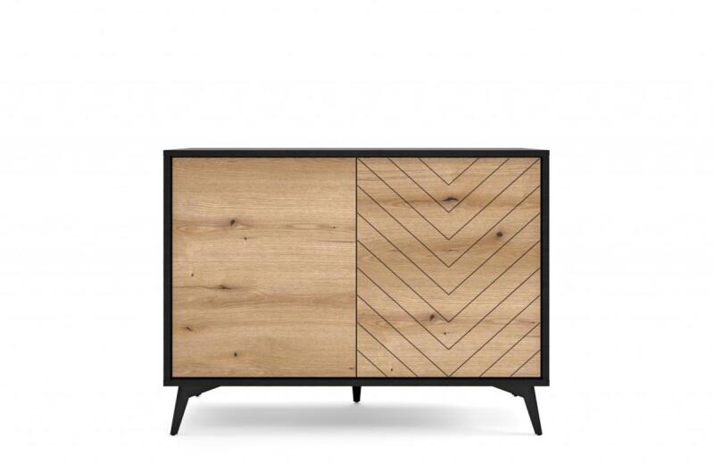 Pearl PE06 komód 104 2D fekete - tölgy Az PEARL termékcsalád homok és matt fekete komódja. ► MDF► ABS élzárás